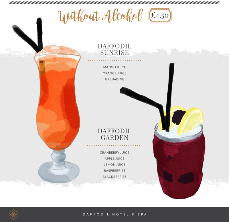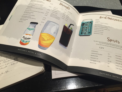 I worked in collaboration with Graphic and Web designer: Helen Dowthwaite, to illustrate a selection of cocktails, wine, spirits and soft drinks for a drinks menu for The Daffodil Hotel & Spa by Grasmere in the Lake District. I had a lot of fun illustrating the various drinks and Helen has presented them perfectly with her layout and design of the menu.